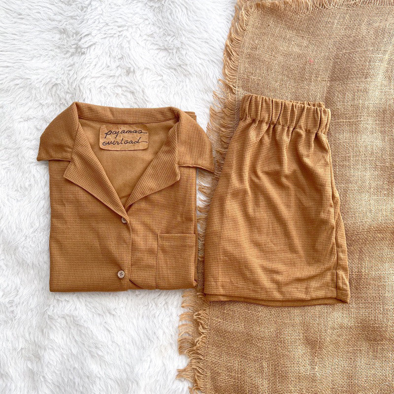 BRIA WAFFLE | waffle knit shortsleeves top + shorts loungewear set | PajamasOverload