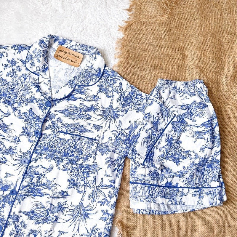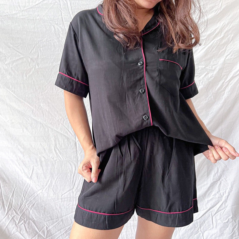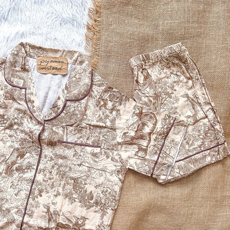 MONICA | soft linen shortsleeves + shorts sleepwear pajama set | PajamasOverload